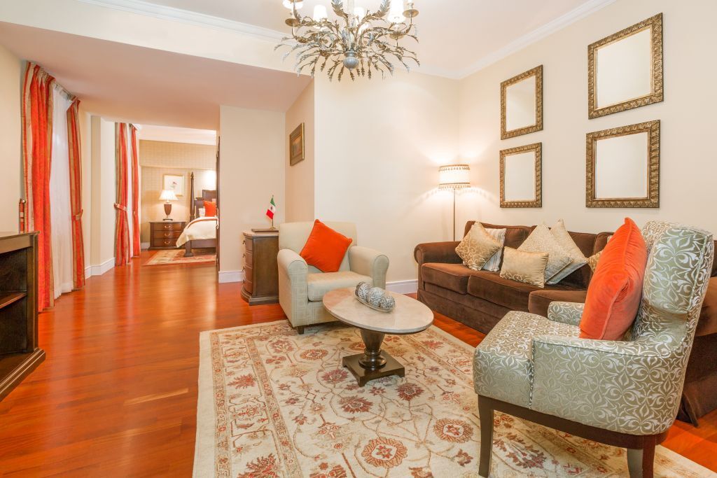 La elegancia clásica hecha habitación. Las master suites del hotel Geneve México City con 51 m² tienen amplios espacios que te proporcionan una desconexión muy especial. Cuentan con una cama King Size, sala independiente del dormitorio para relajarse.